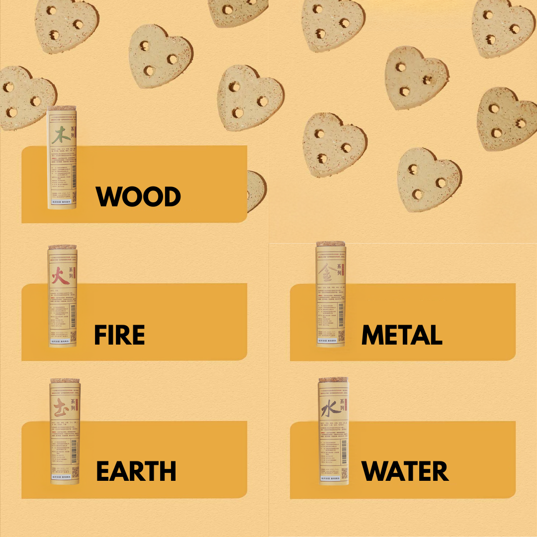 Each cartridge blends premium moxa herbs according to the principles of Wood, Fire, Earth, Metal, and Water—working in harmony to restore your body’s natural balance, improve circulation, and promote overall vitality.