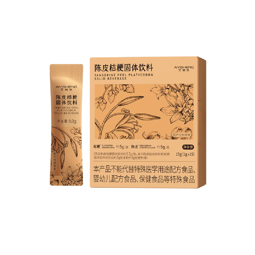 Guided by centuries of herbal tradition and crafted to modern standards, AIYISHENG Tangerine Peel Platycodon Solid Beverage is certified safe by health authorities and produced under stringent quality controls. Each sachet is easy to carry, making it simple to stay refreshed and nourished wherever you are.
